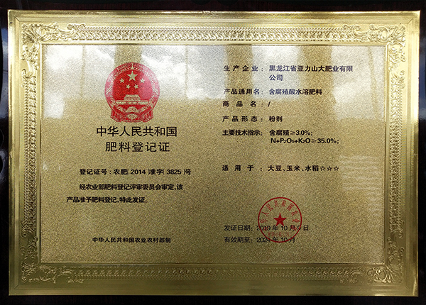 含腐植酸水溶肥料登记证